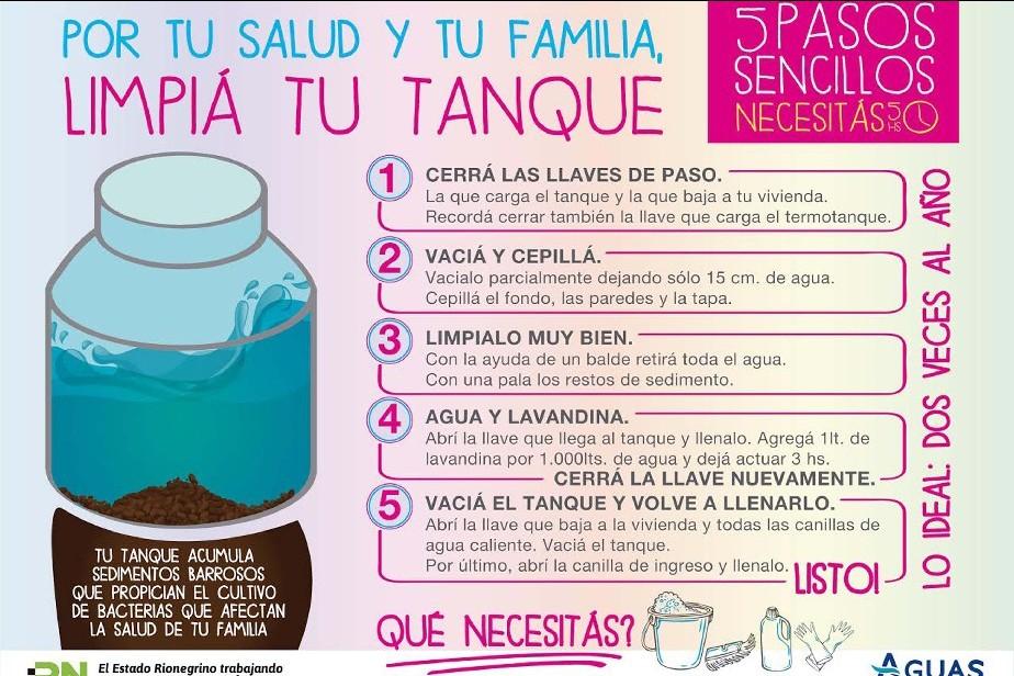 La empresa estatal Aguas Rionegrinas promueve la limpieza de tanques domiciliarios de reserva de agua potable, como una actividad imprescindible para la salud de la familia, de cara al verano.