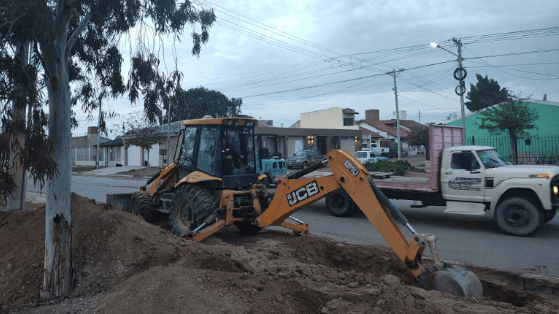 Aguas Rionegrinas colabora con el Municipio de San Antonio Oeste en tareas de saneamiento y drenaje urbano con trabajos sobre el boulevard de calle Fitz Roy, para avanzar en el tendido de 200 metros con el objetivo de instalar un nuevo desagüe pluvial.