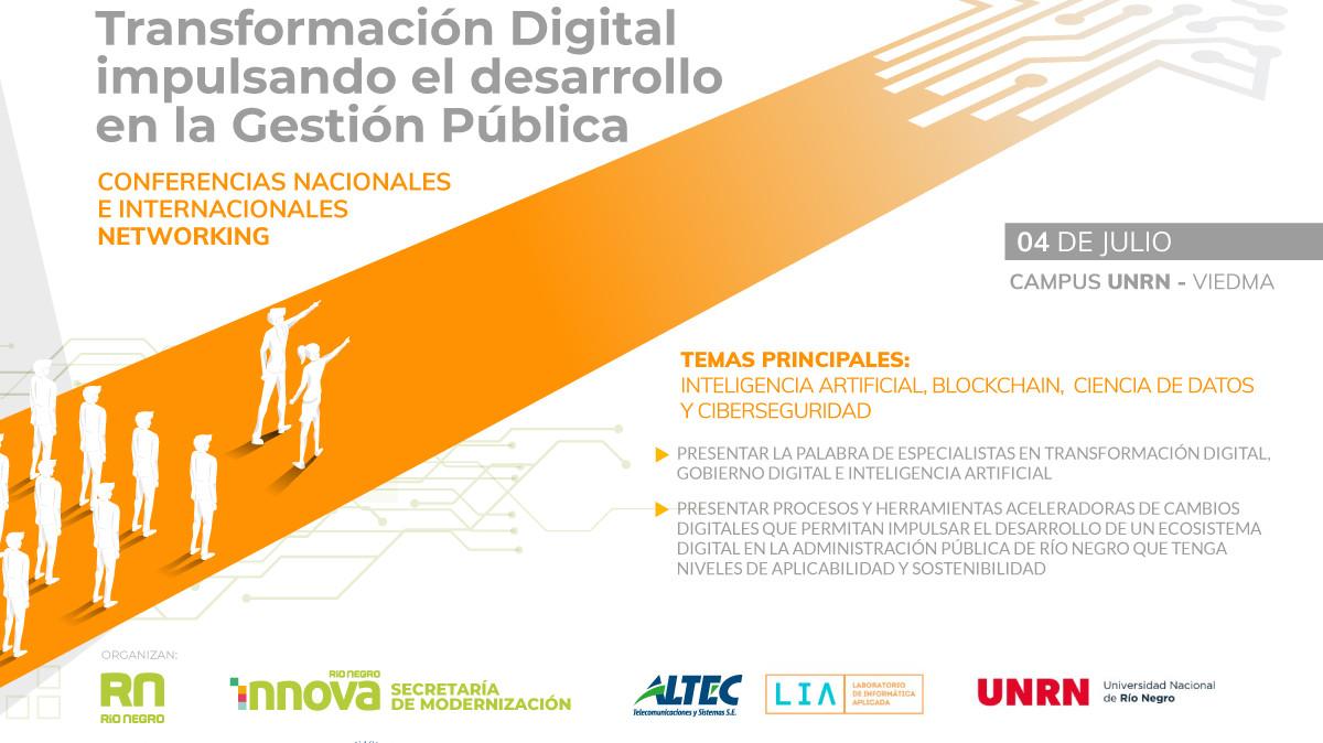 Hoy, más de 180 personas participaron de la Jornada de “Transformación Digital para el desarrollo en la gestión pública” en Viedma, organizada por la Secretaría de Modernización de la Agencia Río Negro Innova, junto con el Laboratorio de Informática Aplicada de la Universidad Nacional de Río Negro; la Secretaría General del Rectorado de la UNRN y ALTEC S.E.