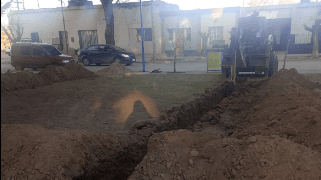 Aguas Rionegrinas y el Municipio de Catriel pusieron en marcha un importante plan de trabajo conjunto en la localidad para mejorar un sector de alta circulación, con tareas de zanjeo en la plaza San Martín