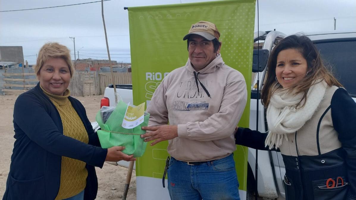 La Provincia, a través del programa provincial RN Suelo Urbano, realizó la entrega de árboles para forestación y brindó capacitación ambiental a familias del barrio Mi Bandera de San Antonio Oeste.