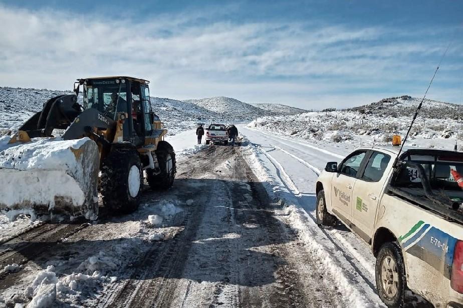 Luego de un enorme esfuerzo del personal de Vialidad Rionegrina, que demandó más de 36 horas de trabajo continuo, se logró despejar la nieva para abrir el camino y llegar hasta el paraje Laguna Blanca. Esto facilitará la asistencia de las familias de esta zona, que se encontraban aisladas.