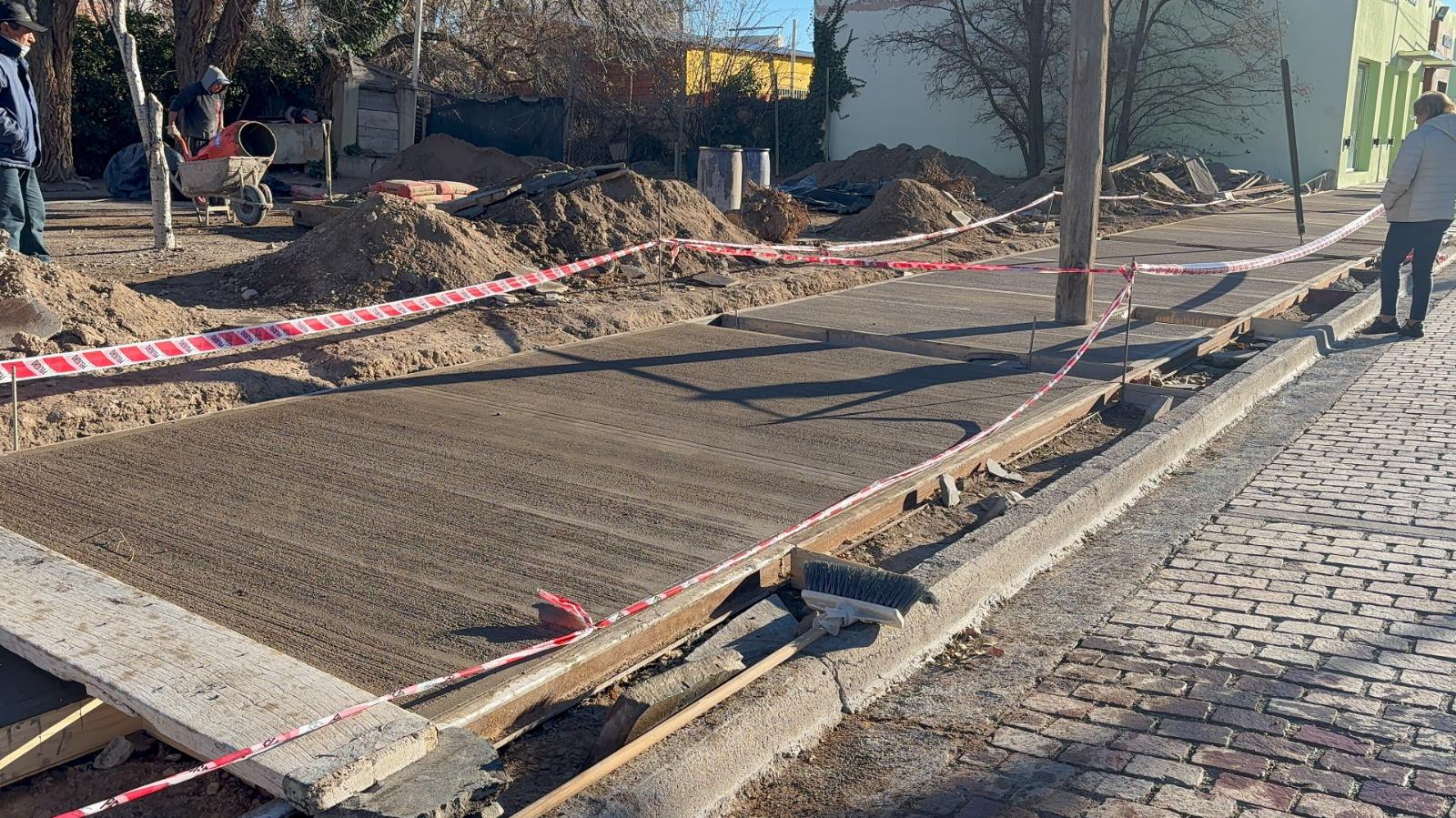 Mediante el aporte que el Municipio de Los Menucos recibió por parte de la Provincia, en el marco de las renegociaciones de las concesiones hidrocarburíferas, la localidad se encuentra construyendo veredas en instituciones de la comunidad.