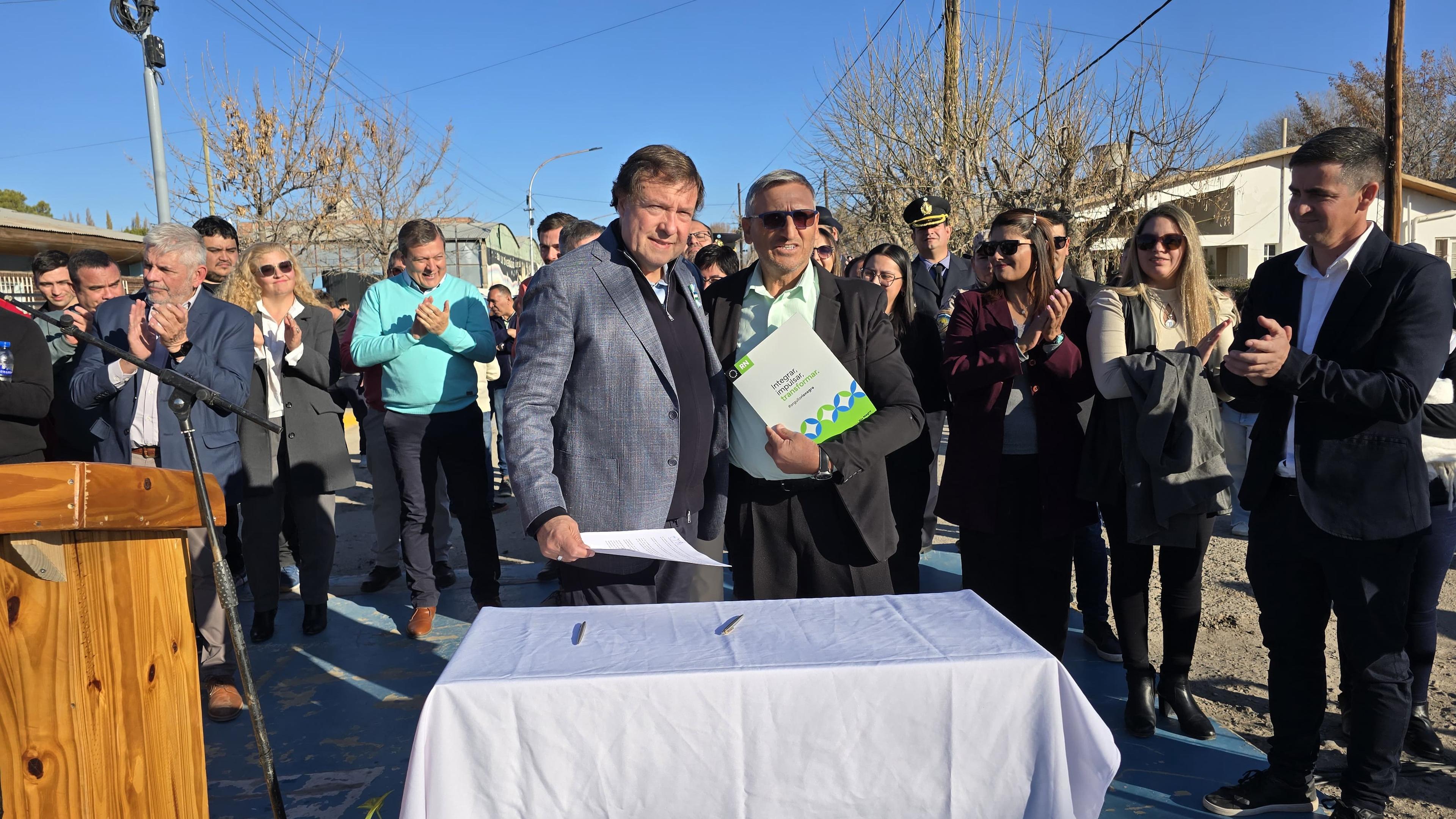 El Gobernador Alberto Weretilneck entregó a la Municipalidad de Maquinchao el pliego licitatorio para la ampliación de la red de gas, que permitirá dar capacidad de conexión a 208 familias con una inversión superior a $376 millones. Además se firmó el bono petrolero, con el cual la localidad mejorará su estadio municipal, con tareas de nivelación, de parquización y compra de equipamiento para su mantenimiento general.