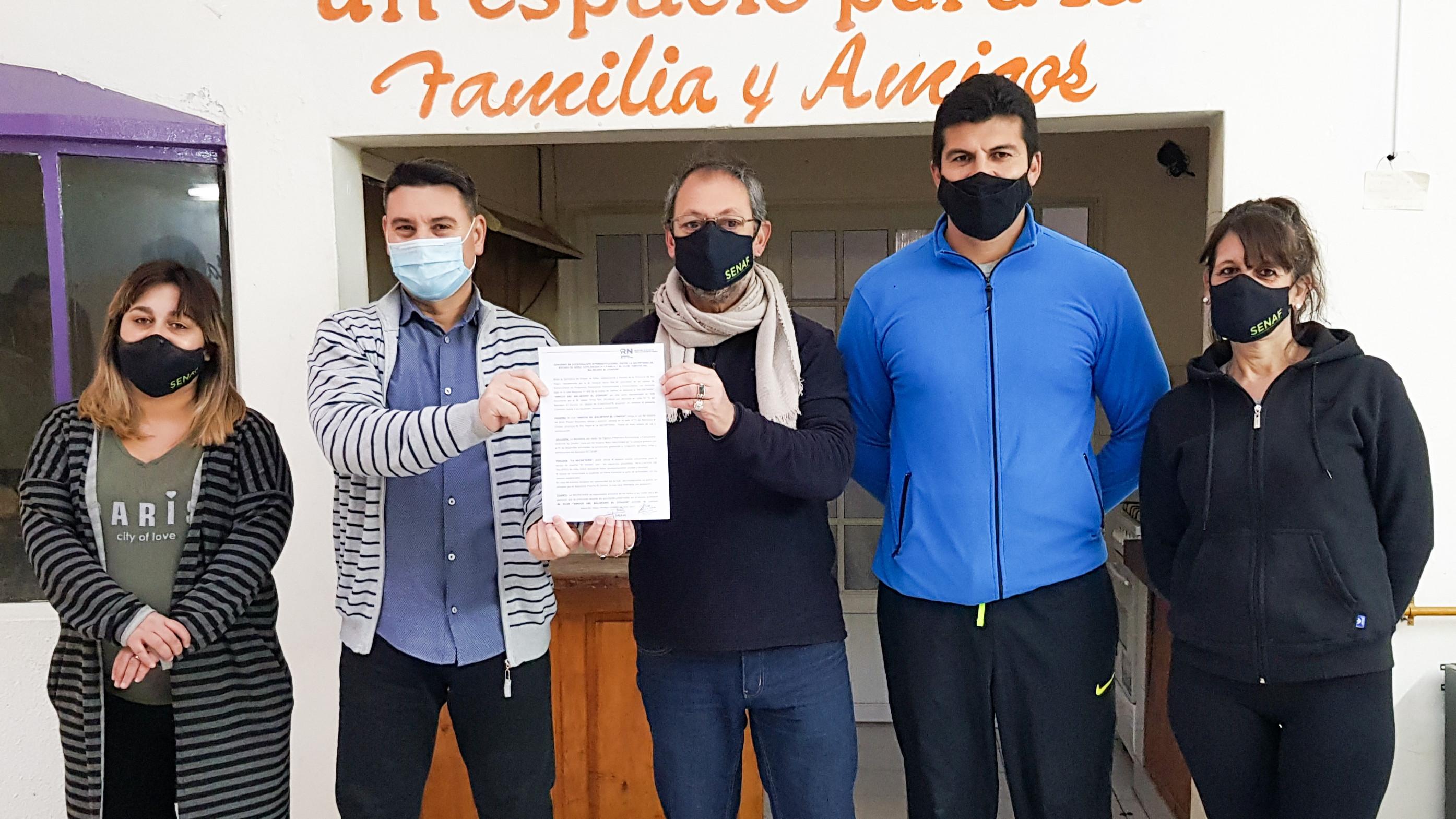 A través de la firma de un convenio entre el subsecretario de Programas Preventivos Promocionales y Comunitarios, Horacio Veros y el presidente del Club Social y Deportivo Amigos del Balneario El Cóndor, Walter Torres, se oficializó la utilización del espacio del club para realizar los talleres y actividades de los más de 40 niños, niñas y adolescentes que son parte del programa Hueche de la SENAF en la villa marítima.