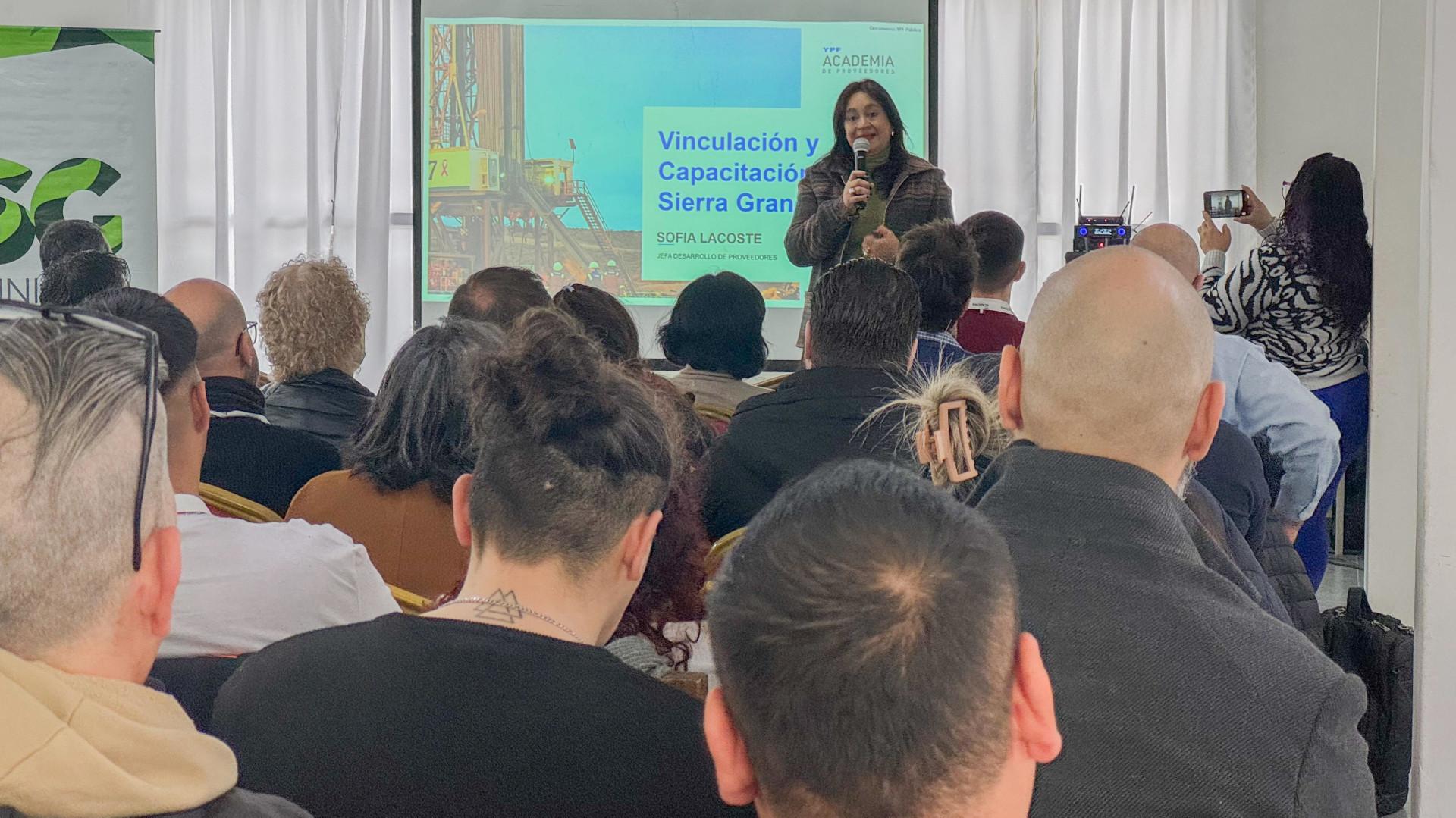 Proveedores, comerciantes y empresarios de Sierra Grande participaron de un encuentro de vinculación con representantes de YPF, empresas constructoras del oleoducto Vaca Muerta Oil Sur (VMOS) y autoridades provinciales.
