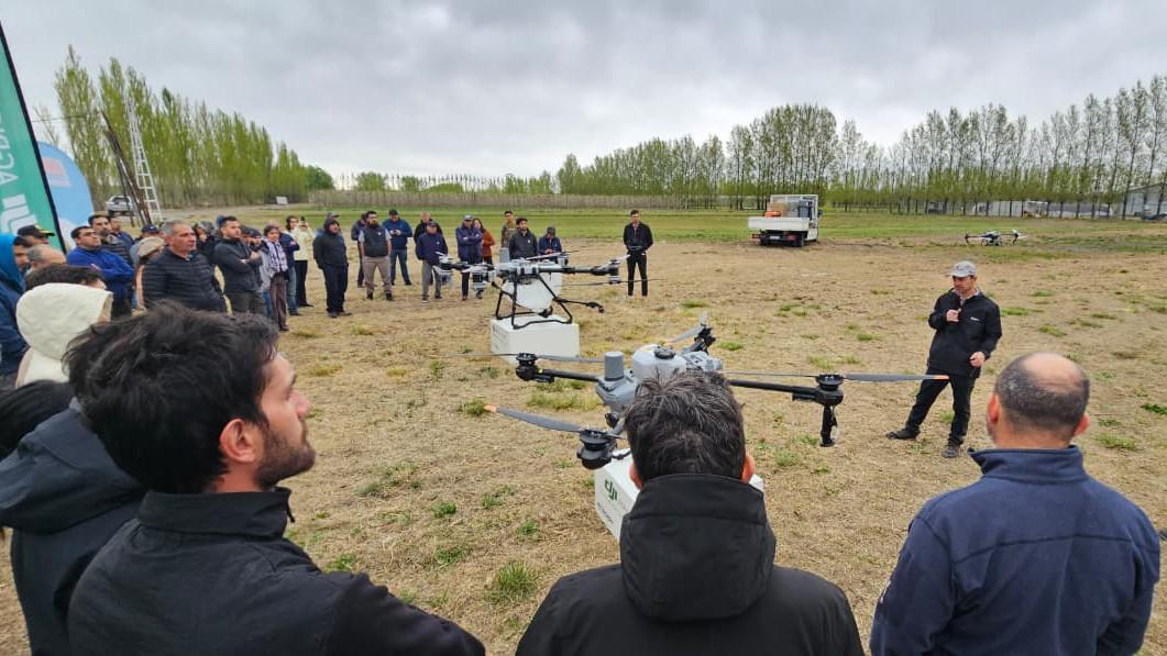 Más de 80 productores del Alto Valle y Valle Medio participaron de una jornada abierta organizada por la Secretaría de Fruticultura, la Federación de Productores y el INTA, donde se realizó una demostración de uso de drones aplicados a la actividad frutícola.